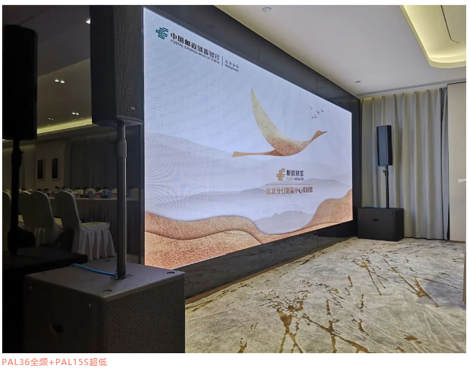 從大會議室的整體環(huán)境出發(fā),以兩組“PAL36全頻+PAL15S超低”組合支架安裝擔當主擴聲音箱。PAL系列線性陣列音柱,音色和美感兼?zhèn)洌毺氐目臻g擴散技術(shù),使發(fā)出的聲波能向遠處和兩邊擴散,而非上下方向傳播,讓細膩之聲充盈全場。