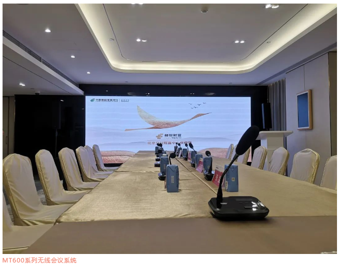 考慮這里日常舉行會議所需,配備了一套MT600系列無線會議系統(tǒng),由系統(tǒng)主機MT600WZ、主席單元MT680WC、客席單元MT680WD組成,具備討論發(fā)言、視像跟蹤等功能,無線連接的安裝方式,方便、整潔又美觀,加上自帶的液晶顯示屏,可實時提示人員操作步驟。