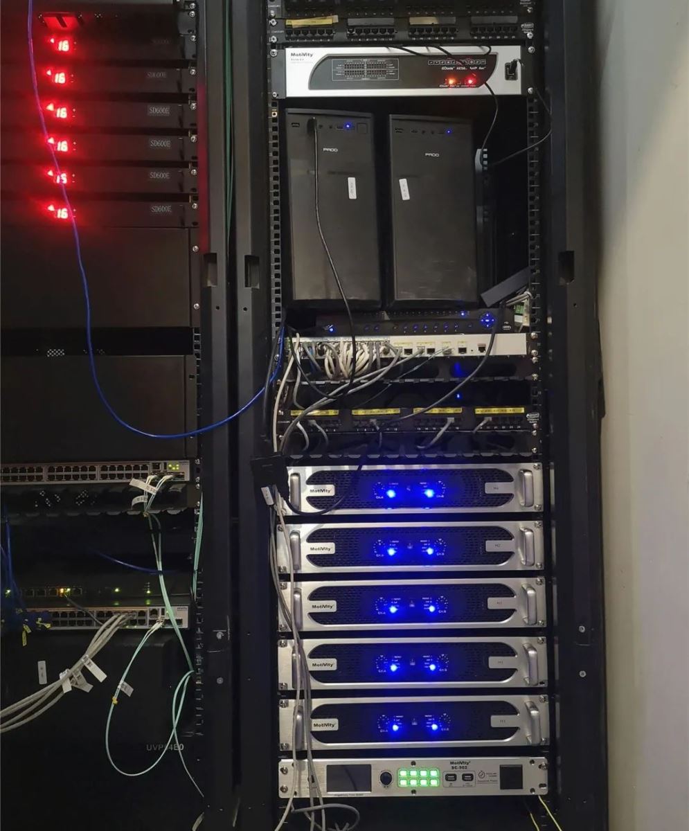 整個擴聲系統(tǒng)搭配H系列功放、MA1610-F調(diào)音臺、Stride8.8處理器、SC-902電源時序器,保證了高品質(zhì)的聲效輸出、保持了系統(tǒng)的穩(wěn)定運行,更方便了人員的日常管理與使用。