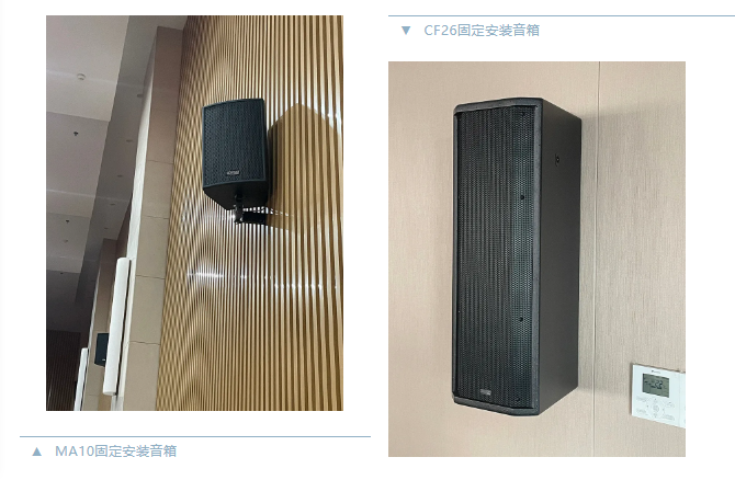 本次項(xiàng)目中兩間多功能報(bào)告廳,宴會(huì)廳的主擴(kuò)聲系統(tǒng)均采用Mission Pro(英國美聲)MA系列音箱系統(tǒng),新聞發(fā)布室、情景實(shí)訓(xùn)室及9間教室,均采用CF系列固定安裝音箱系統(tǒng),會(huì)議室采用CV6-16吸頂音箱,本次項(xiàng)目所有場(chǎng)景的驅(qū)動(dòng)揚(yáng)聲器系統(tǒng)皆采用MI系列數(shù)字功放。