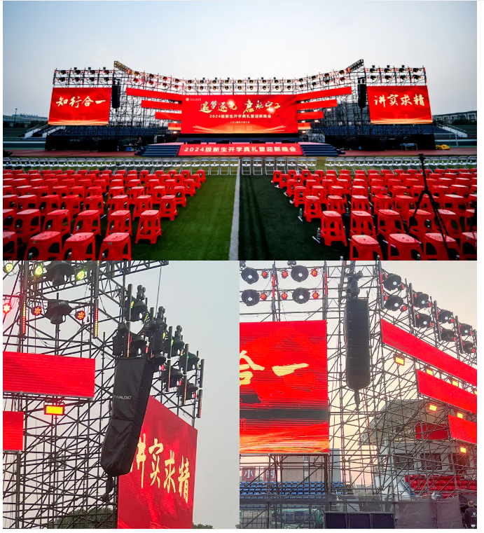 現(xiàn)場,燈光秀如繁星般璀璨,點燃了全場師生的熱情。在這樣一個溫馨而熱烈的氛圍中,TWAUDiO音響系統(tǒng)以其精準(zhǔn)的聲音定位和出色的音質(zhì)表現(xiàn),贏得了在場觀眾的贊譽。18只VERA 36三分頻垂直線陣揚聲器,將每一個音符都精準(zhǔn)地傳遞到校園的每一個角落,讓每一位師生都能感受到音樂的魅力。