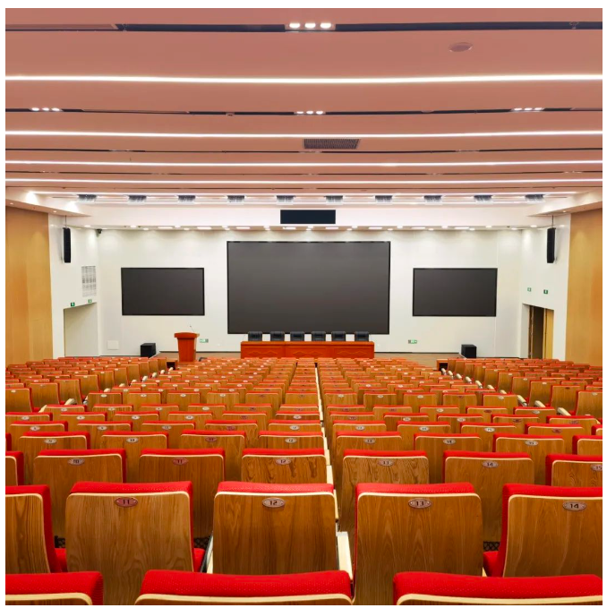 重慶醫科大學科研樓學術報告廳擴聲系統由德國SEEBURG acoustic line (SAL聲愛樂)和西班牙RAM audio打造,自主品牌DIGIRATE迪吉瑞為其配備高效穩定的數字會議系統,以滿足召開各類會議、學術討論、演講、報告、新聞發布、多媒體教學培訓、觀看電影等活動需求,大大提高學校教學質量與師生文娛活動水平。