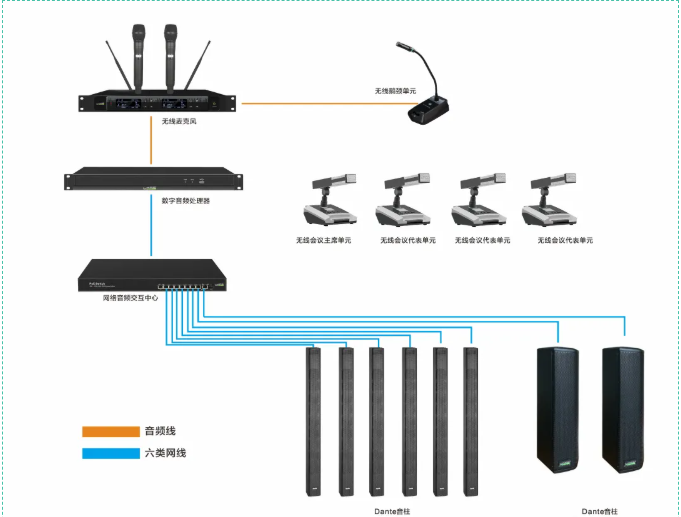 周邊設(shè)備選用網(wǎng)絡(luò)音頻交互中心增強(qiáng)整體設(shè)備穩(wěn)定性。