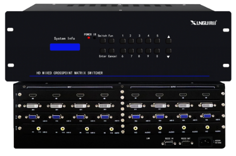 矩陣切換器就是將一路或多路視音頻信號分別傳輸給一個或者多個顯示設備,如兩臺電腦主機要共用一個顯示器,矩陣切換器可以將兩臺電腦主機上的內容任意到同一個或多個顯示器上,可切換多路信號輸出的設備。