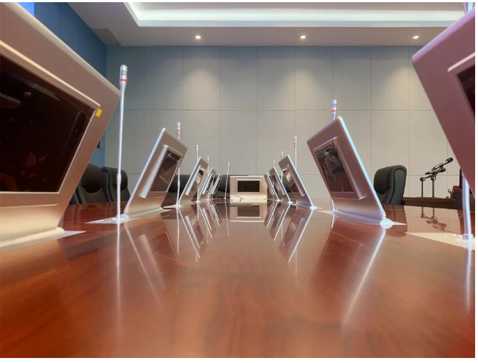 其發(fā)言話筒可以是鵝頸升降式話筒(有的可拔插)、頁面話筒、可個(gè)人收藏式手持式話筒、內(nèi)藏式話筒等。