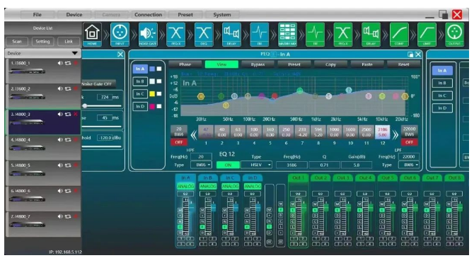 帶有Dante協議和TCP/IP局域網遠程控制i3600數字音頻處理器,對音頻處理提供便利,4臺DMX系列功放提供強勁而充足的性能推動整個系統。
