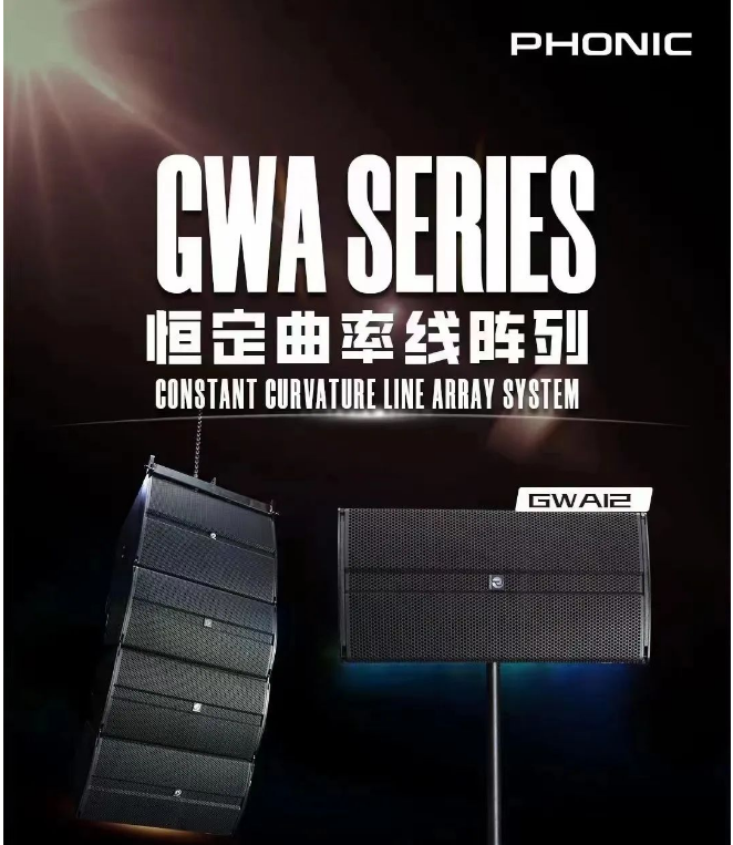 PHONIC CORPORATION 的 GWA 系列是為滿足演出租賃公司和系統集成商日益多樣化的需求而開發 的,該產品提供了較佳的觀眾覆蓋率, GWA 系列由 12"恒定曲率陣列全頻和 18"可飛行的超低音組成,卓越的音質和靈活的垂直/水平擴聲技術,使得 GWA 能夠適應任何項目的需求。