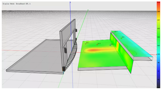 值得一提的是,這次春晚的舞臺是非常干凈的,無論是模擬預測,還是實地測量,都顯示出主擴系統(tǒng)對舞臺是幾乎沒有干擾的,聲壓級小且直達聲少,并且最終的實際聽感,主擴系統(tǒng)對舞臺的不良串音是極其微小的。
