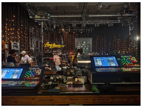 場景由兩張HD96-24調音臺登錄同一個賬號進行云端同步,兩張控臺分別通過光纖連接至舞臺下方的兩張KLARK TEKNIK DN9680的OPTICAL口。備份調音臺通過光纖連接以外,另外通過網線連接上主DN9680的COPPER口,在兩組信號獨立備份使用的同時,還可以通過電腦對DN9680進行連接方式的切換,備份調音臺可以快速地接管整個主控系統,這樣能起到雙重保險的作用。