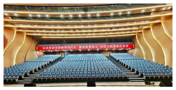 藝術中心演藝廳可容納1200位師生,具備承載各類文藝演出、會議、學術報告等多功能使用需求。校方對場內聽音區的聲壓級均勻度有很高的要求,要求為藝術中心演藝廳提供一套現代化高標準的擴聲系統,具備聲壓級大,有較高語言清晰度,保證音色的一致性。