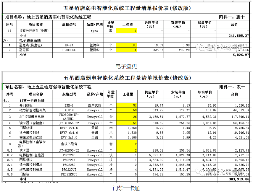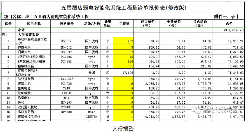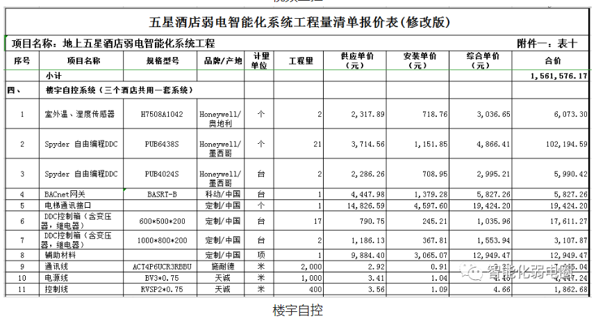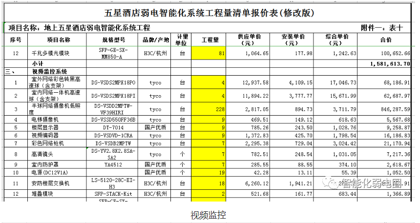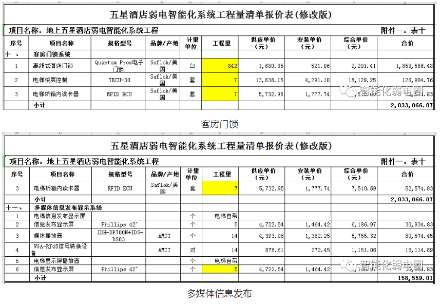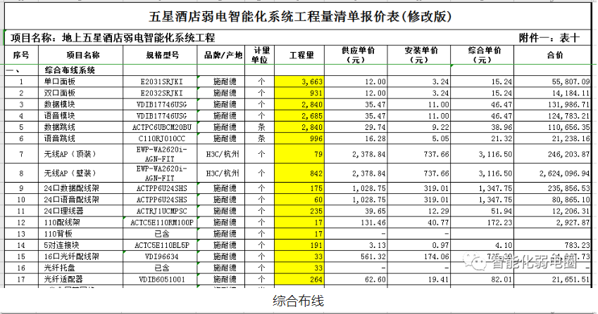 一套五星級酒店智能化弱電系統工程量清單(預算千萬級,可參考)