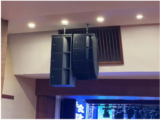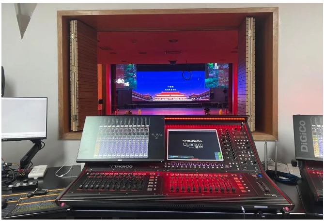 主擴使用L-Acoustics A15i(A15i Foucs、A15i Wide)。A15i擁有Panflex技術,可在現場很直觀地調節(jié)好音箱的聲輻射方向,保證觀眾席各個區(qū)域內都可獲得較為均勻的直達聲,精準的角度投射有利于實現聲場的全覆蓋;低頻音箱使用KS21i,擴展低頻下限。 主擴系統明裝線陣列吊掛置舞臺上方,明裝吊掛使聲音不受阻擋,能大幅度減少對聲能的損失并提高清晰度。且A15i外觀干凈整潔符合場地的審美需求,是聽覺效果和視覺效果的最佳解決方案。 補聲和返送系統選擇X12多功能同軸系統揚聲器。擁有90°x60°橢形指向性,可根據現場聽音需求進行調整,確保獲得最真實的聽感。 臺唇比較靠近觀眾區(qū)域,選擇小巧的5XT揚聲器補充前排觀眾的聲音能量,有效避免對觀眾視覺體驗造成影響。另外,臺唇高度的設置也十分合理,恰好高于桌子避免被遮擋,使前區(qū)的聽眾獲得更多直達聲。 調音臺使用兩張DiGiCo Quantum 225互為鏡像備份,兩張同型號、同版本的調音臺之間進行實時的數據同步,一個人可同時操作兩個調音臺,方便快捷。主備設備還能隨時切換,穩(wěn)定性大幅提高,全面保障演出過程中音頻信號穩(wěn)定傳輸。 升級改造后的效果受到大家的一致好評,沉浸式的聽音環(huán)境有效提高觀眾的感官體驗,震撼的效果深深感染和陶醉著在場的每一位觀眾,引發(fā)強烈的情感共鳴。